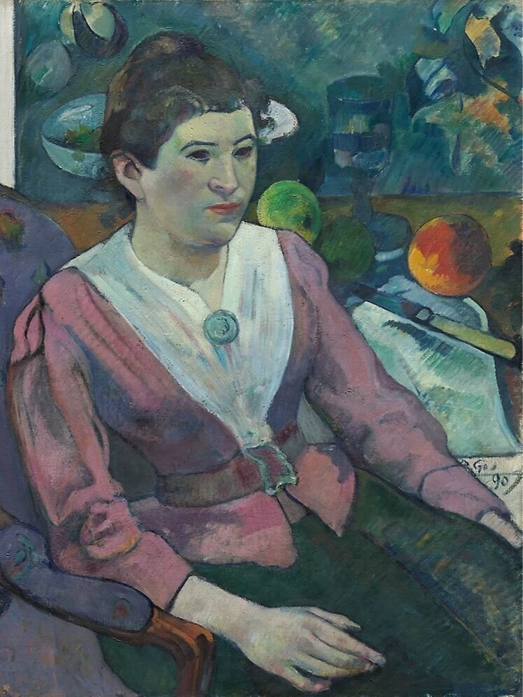 Paul Gauguin. Woman in front of a Still Life by Cézanne. ce. 1890. Oil on linen canvas. French. Art Institute of Chicago.