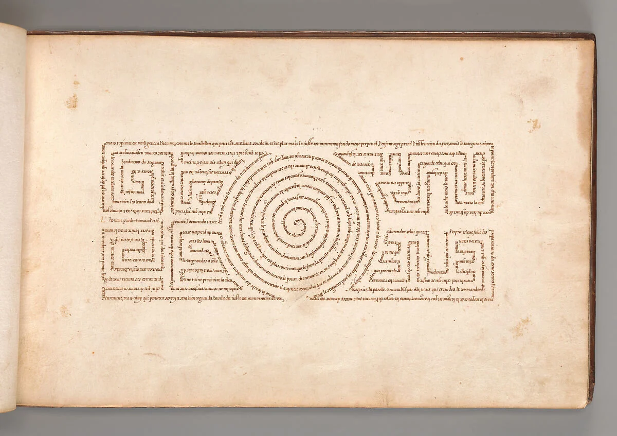 Anonymous French or Flemish. Micrographic Design in the Shape of a Labyrinth. early 17th century. Pen and black and brown ink. French or Flemish. The Metropolitan Museum of Art.